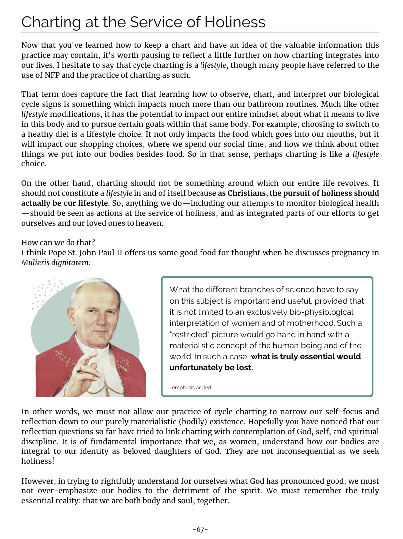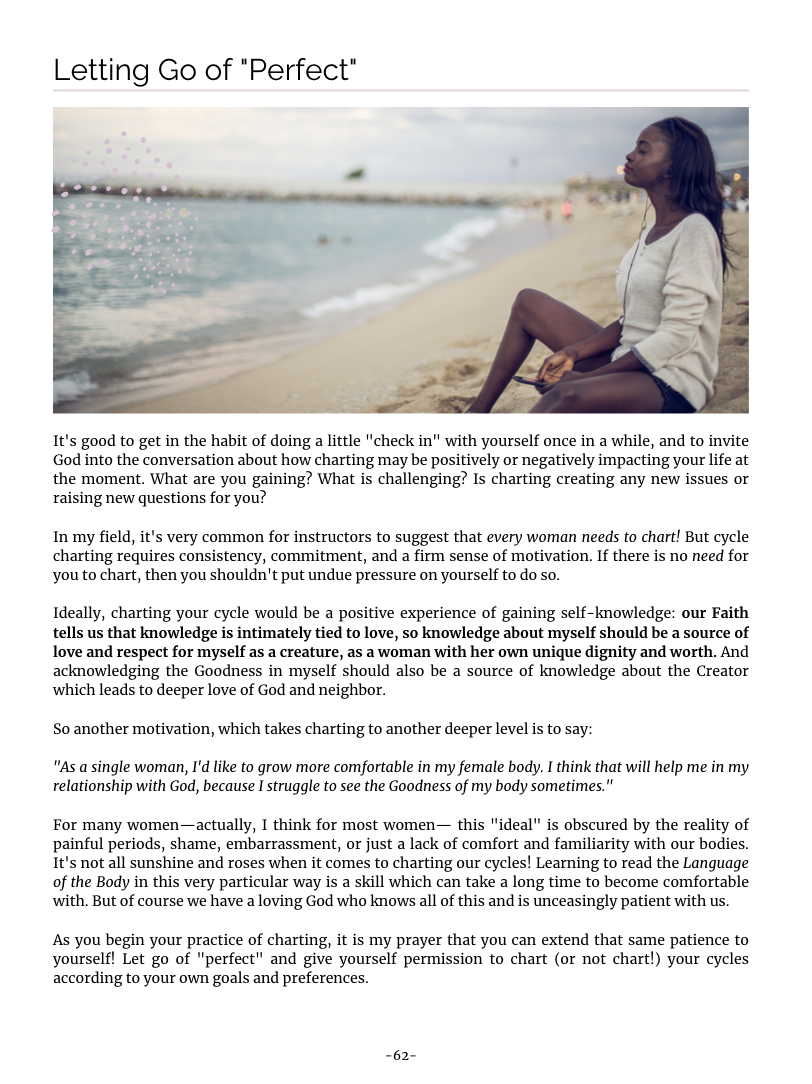 Cycle Charting for Single Women draws on over ten years of Natural Family Planning (NFP) coaching plus pastoral and campus ministry experience to walk you through:
