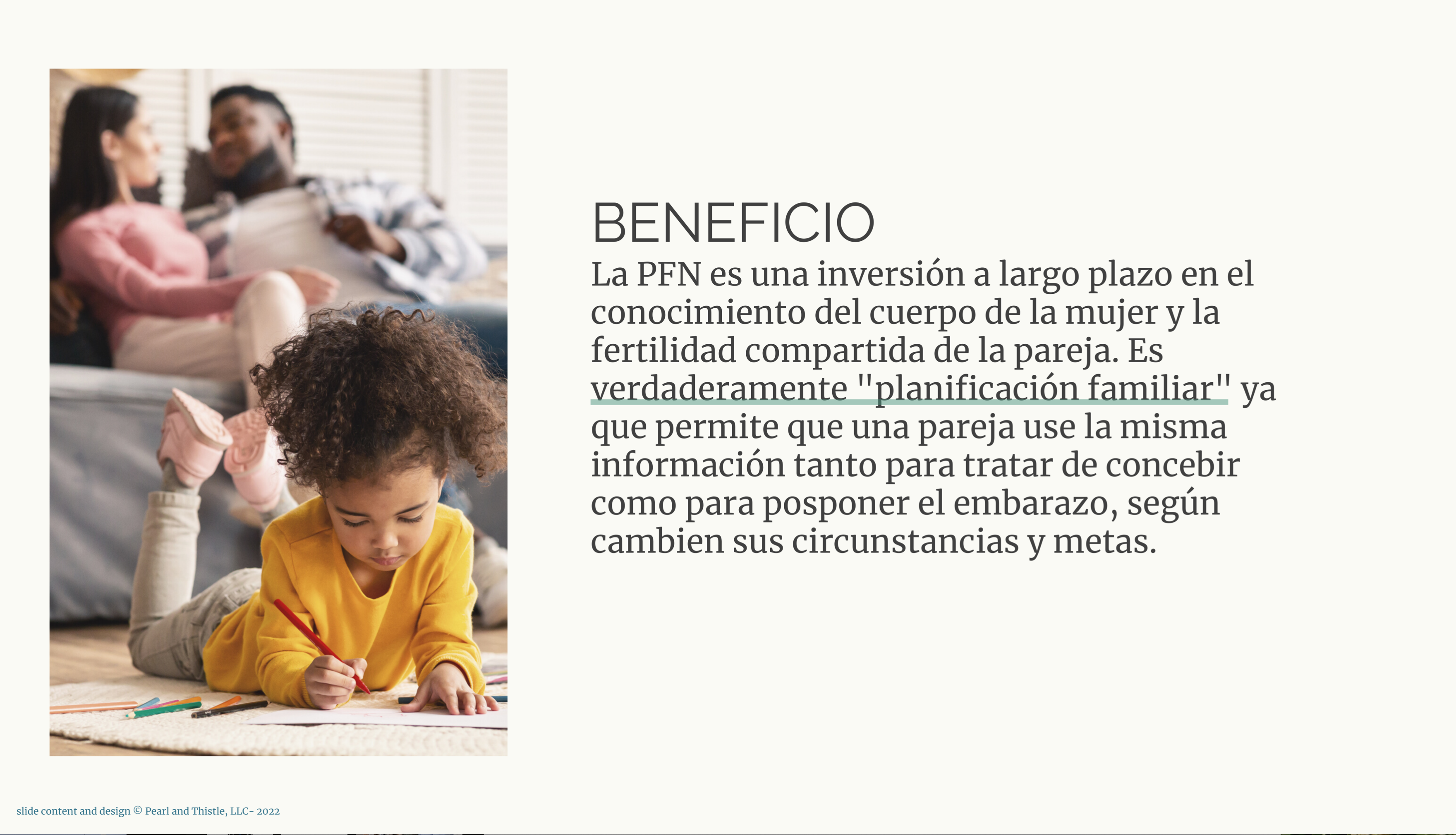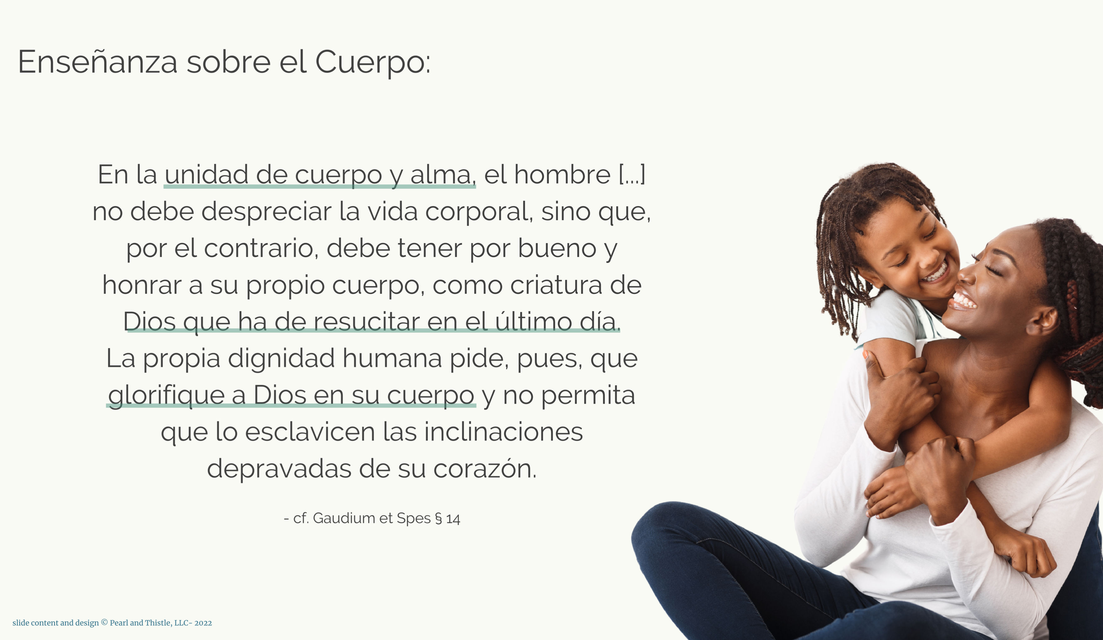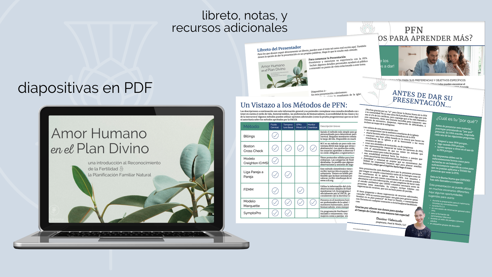 Christina Valenzuela es propietaria de Pearl & Thistle, donde ofrece un enfoque innovador para el conocimiento profundo del lenguaje del cuerpo para Católicos, incluyendo apoyo parroquial continuo. Christina ha sido instructora de Planificación Familiar Natural (PFN) durante diez años, tiene bachillerato y maestría en Teología y ha pasado casi dos décadas en parroquias y ministerios universitarios. Ella sabe lo difícil que es encontrar recursos bien diseñados, atractivos y prácticos para usar en ministerios de PFN, y desea que esta presentación los ayude a educar, apoyar y compartir la PFN con otros.